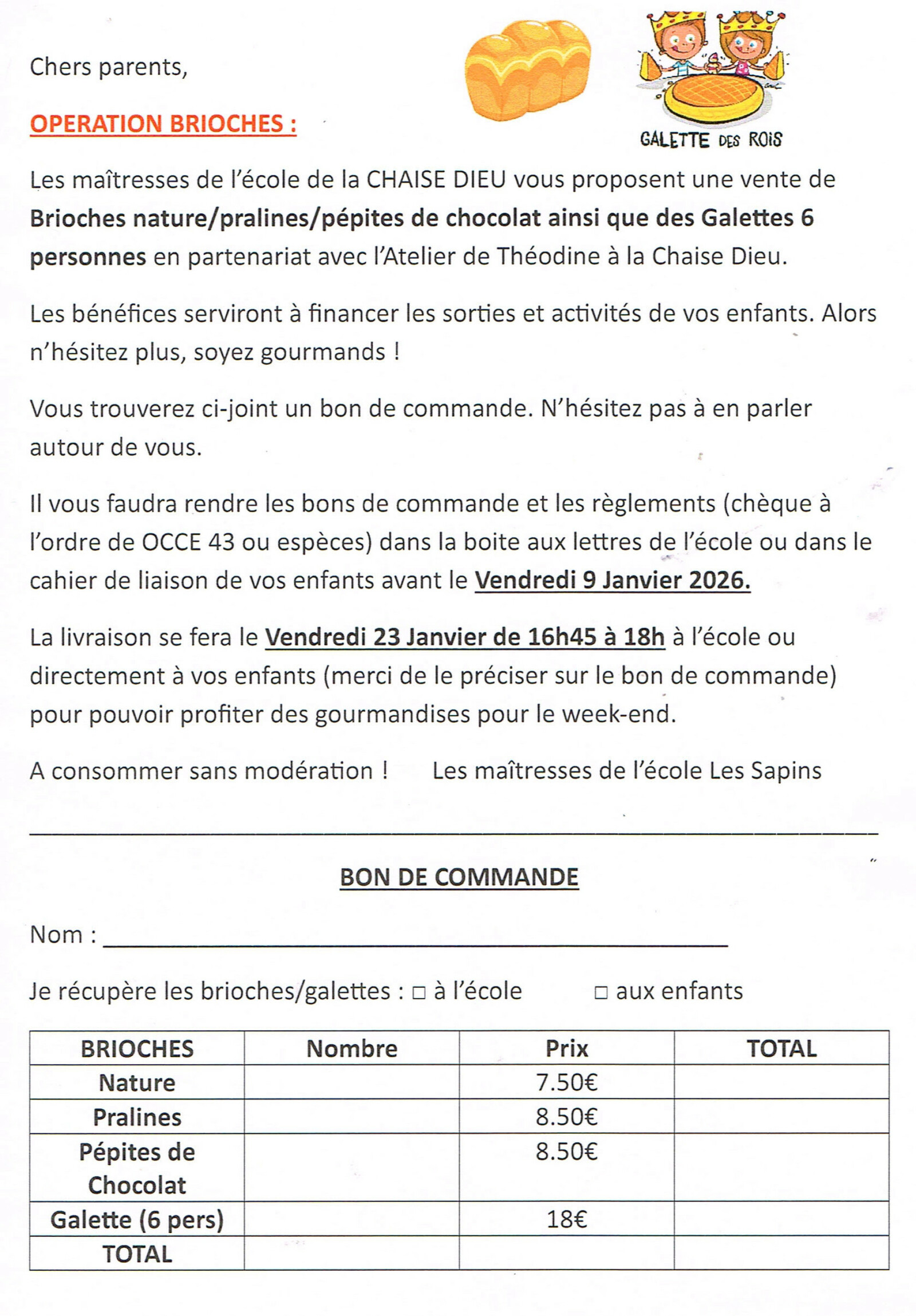 Action "BRIOCHES ET GALETTES" Ecole La Chaise Dieu